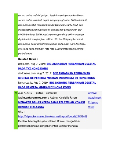 detik.com, Aug 7, 2019: BNI AKRABKAN PERBANKAN DIGITAL