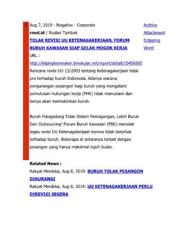 Rakyat Merdeka, Aug 8, 2019: BURUH TOLAK PESANGON