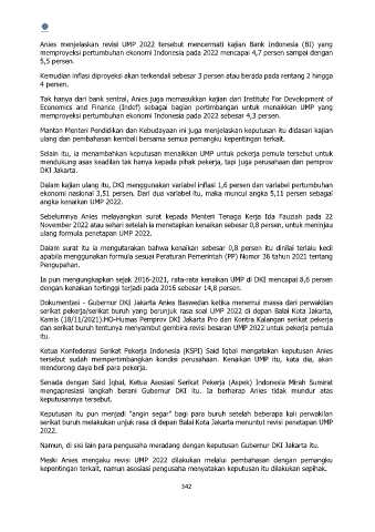 Anies menjelaskan revisi UMP 2022 tersebut mencermati kajian Bank Indonesia (BI) yang