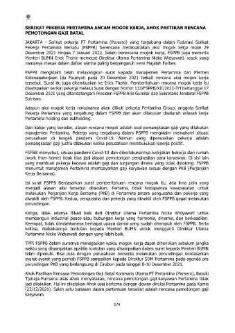tersebut. Surat itu juga ditembuskan ke Erick Thohir. Pemberitahuan rencana mogok kerja itu
