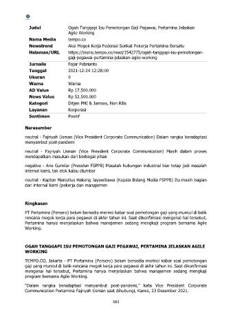 OGAH TANGGAPI ISU PEMOTONGAN GAJI PEGAWAI, PERTAMINA JELASKAN AGILE