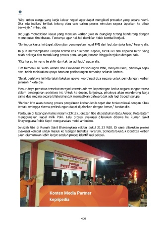 telah bekerja dan mendukung proses pemulangan jenazah hingga berjalan dengan baik.