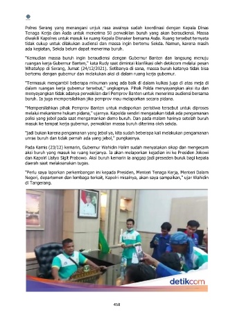 "Kemudian massa buruh ingin beraudiensi dengan Gubernur Banten dan langsung menuju