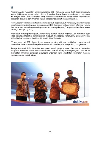 sistem JDIH dengan kinerja terbaik. Sekjen Kemnaker, Anwar Sanusi mengatakan, penghargaan