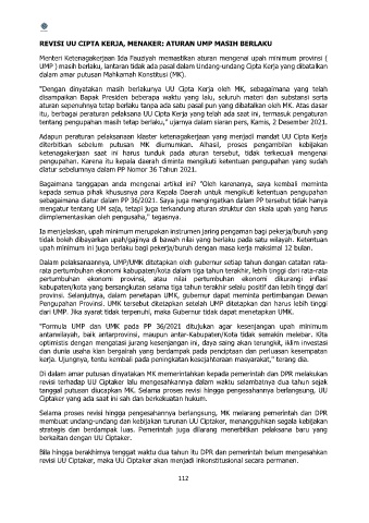 UMP ) masih berlaku, lantaran tidak ada pasal dalam Undang-undang Cipta Kerja yang dibatalkan