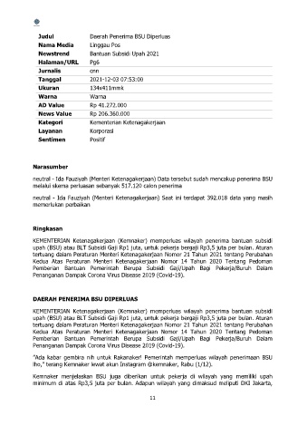 neutral - Ida Fauziyah (Menteri Ketenagakerjaan) Data tersebut sudah mencakup penerima BSU