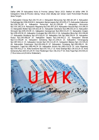 Kudus Rp2.293.058,26 20. Kabupaten Jepara Rp2.108.403,11 21. Kabupaten Demak