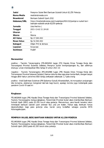 Judul Pemprov Sulsel Beri Bantuan Subsidi Untuk 62.250 Pekerja