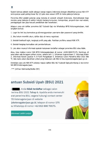 5. Lalu akan muncul informasi apakah karyawan terdaftar sebagai penerima BSU atau tidak.