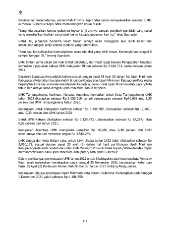 Sedangkan, khusus penetapan Upah Minimum Kota Batam, Gubernur menetapkan pada tanggal