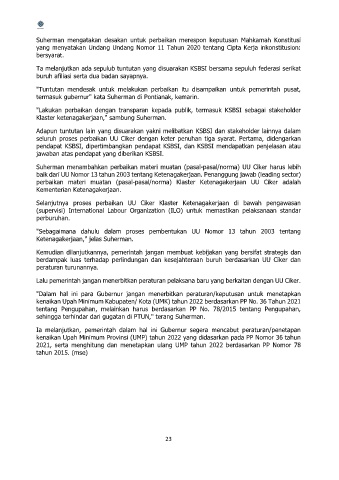 Suherman menambahkan perbaikan materi muatan (pasal-pasal/norma) UU Ciker harus lebih