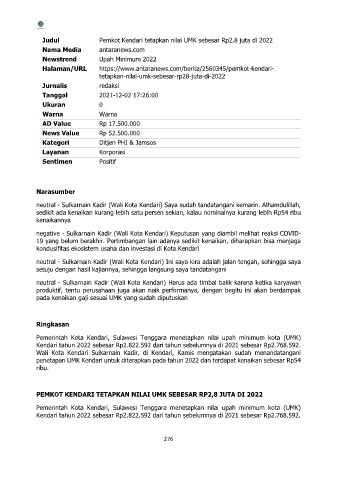 Judul Pemkot Kendari tetapkan nilai UMK sebesar Rp2,8 juta di 2022