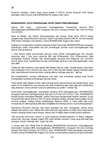 memuat aturan bahwa pekerja atlet akan diwajibkan terlindungi jaminan sosial ketenagakerjaan.