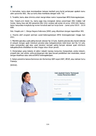 Center. Kamu bisa cek NIK penerima BSU 2021 melalui call center di nomor 1500 630. Namun