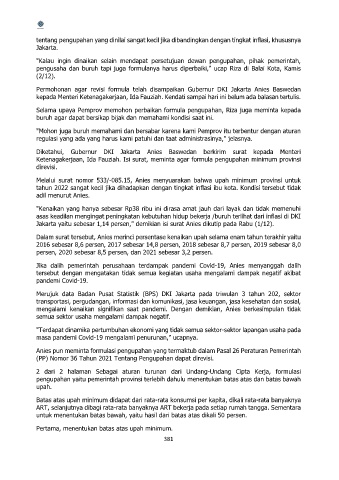 Melalui surat nomor 533/-085.15, Anies menyuarakan bahwa upah minimum provinsi untuk