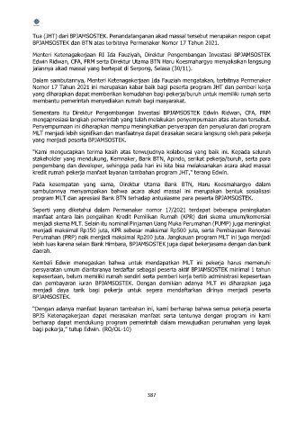 BPJAMSOSTEK dan BTN atas terbitnya Permenaker Nomor 17 Tahun 2021.
