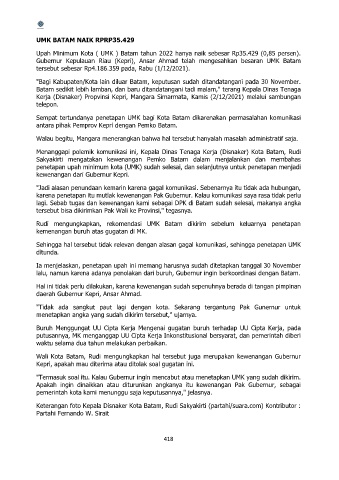 Sempat tertundanya penetapan UMK bagi Kota Batam dikarenakan permasalahan komunikasi