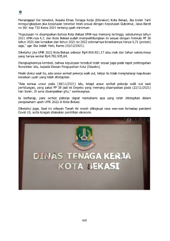 "Keputusan ini disampaikan bahwa Kota Bekasi UMK-nya memang tertinggi, sebelumnya tahun