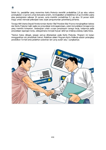 Selain itu, pendaftar yang menerima Kartu Prakerja memiliki probabilitas 2,8 pp atau setara