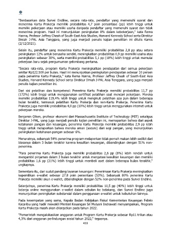 "Para penerima Kartu Prakerja juga memiliki probabilitas 2,6 pp (8%) lebih rendah untuk