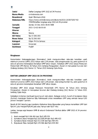 Judul Daftar Lengkap UMP 2022 di 34 Provinsi