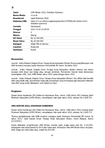menetapkan UMK. Jadi, UMK Bintan tahun 2022 sama dengan tahun 2021