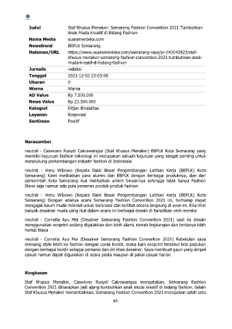 Judul Staf Khusus Menaker: Semarang Fashion Convention 2021 Tumbuhkan