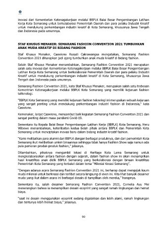 Selain Staf Khusus Menaker menambahkan, Semarang Fashion Convention 2021 merupakan