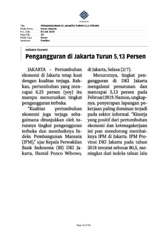 Title PENGANGGURAN DI JAKARTA TURUN 5,13 PERSEN Media Name Koran Jakarta Pub. Date 03 Juli 2019 Page/URL 10 Media Type Koran Sentiment Positive Page 29 of 95.