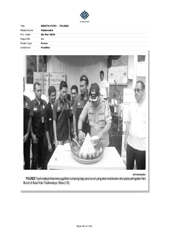 Title BERITA FOTO - POLRES Media Name Galamedia Pub. Date 06 Mei 2019 Page/URL 11 Media Type Koran Sentiment Positive Page 44 of 105.