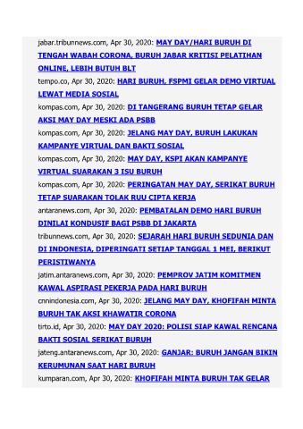 jabar.tribunnews.com, Apr 30, 2020: MAY DAY/HARI BURUH DI
