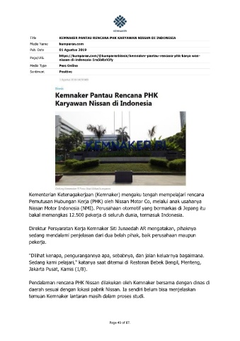 Title KEMNAKER PANTAU RENCANA PHK KARYAWAN NISSAN DI INDONESIA