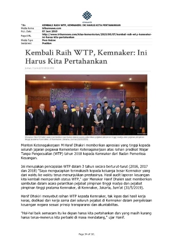 kita kembali memperoleh status WTP," ujar Menaker Hanif Dhakiri saat memberikan