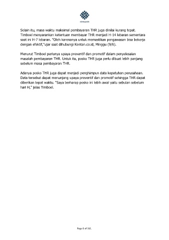masalah pembayaran THR. Untuk itu, posko THR juga perlu dibuat lebih panjang