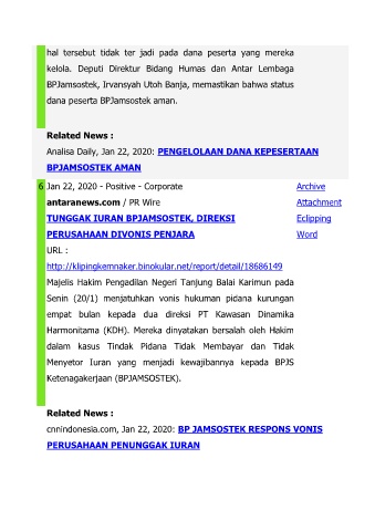 cnnindonesia.com, Jan 22, 2020: BP JAMSOSTEK RESPONS VONIS