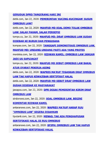tempo.co, Jan 22, 2020: MAHFUD MD SEBUT OMNIBUS LAW BAKAL