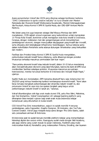 "2045: Collaboration to ignite creative industry" ini turut dihadiri oleh Menteri
