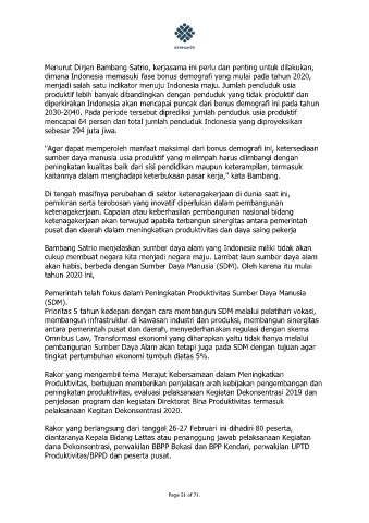 Pemerintah telah fokus dalam Peningkatan Produktivitas Sumber Daya Manusia