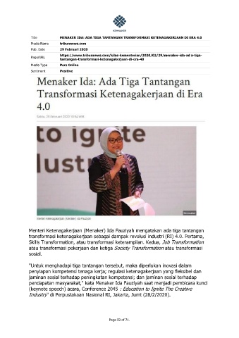 Title MENAKER IDA: ADA TIGA TANTANGAN TRANSFORMASI KETENAGAKERJAAN DI ERA 4.0