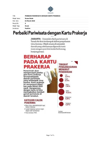 Title PERBAIKI PARIWISATA DENGAN KARTU PRAKERJA Media Name Koran Sindo Pub. Date 02 Maret 2020 Page/URL 3 Media Type Koran Sentiment Positive Page 7 of 71.