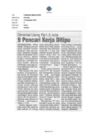Title 9 PENCARI KERJA DITIPU Media Name Pos Kota Pub. Date 13 Desember 2019 Page/URL 5 Media Type Koran Sentiment Positive Page 6 of 113.