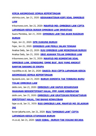 fajar.co.id, Jan 21, 2020: RUU OMNIBUS LAW, MAHFUD MD JELASKAN