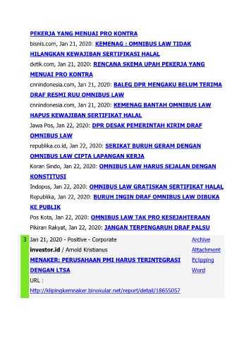 bisnis.com, Jan 21, 2020: KEMENAG : OMNIBUS LAW TIDAK