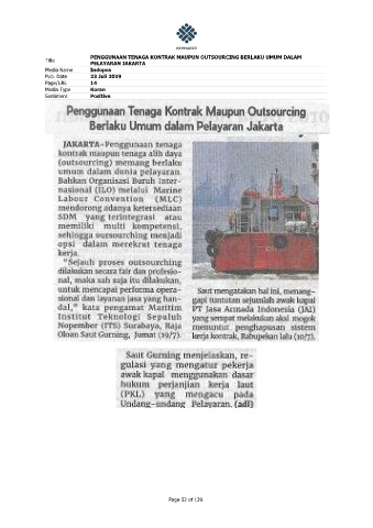 PENGGUNAAN TENAGA KONTRAK MAUPUN OUTSOURCING BERLAKU UMUM DALAM Title PELAYARAN JAKARTA Media Name Indopos Pub. Date 23 Juli 2019 Page/URL 14 Media Type Koran Sentiment Positive Page 52 of 139.