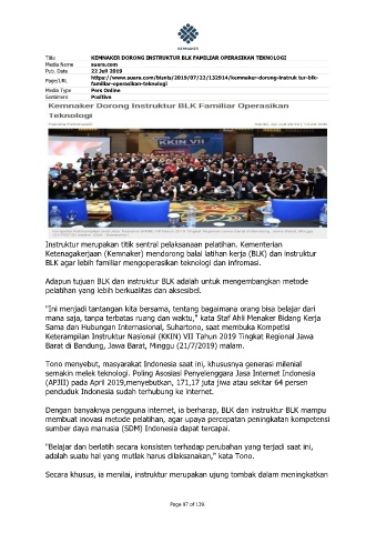 Title KEMNAKER DORONG INSTRUKTUR BLK FAMILIAR OPERASIKAN TEKNOLOGI