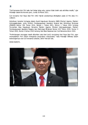 "Cuti bersama Idul Fitri satu hari tetap tetap ada, namun tidak boleh ada aktivitas mudik," ujar