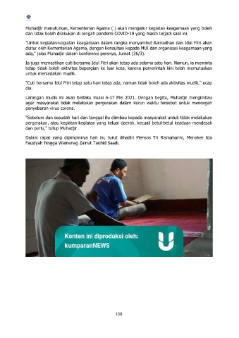 "Untuk kegiatan-kegiatan keagamaan dalam rangka menyambut Ramadhan dan Idul Fitri akan