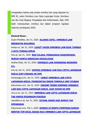 viva.co.id, Jan 31, 2020: OMNIBUS LAW CIPTA LAPANGAN KERJA