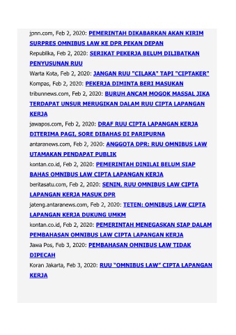 Jawa Pos, Feb 3, 2020: PEMBAHASAN OMNIBUS LAW TIDAK