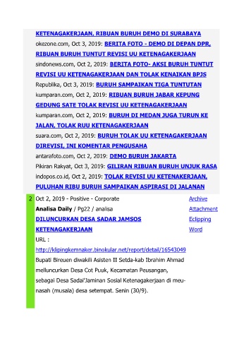 sindonews.com, Oct 2, 2019: BERITA FOTO- AKSI BURUH TUNTUT